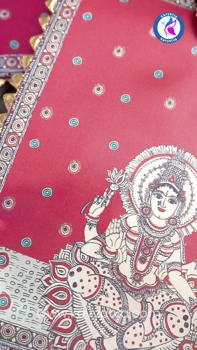 Hand-painted Kalamkari fabrics with natural dyes and rich patterns.