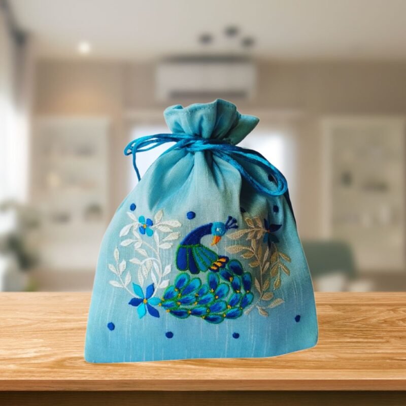 Complete your festive look with the Kavyatva Kalamkari Silk Potli, a perfect blend of heritage and elegance.