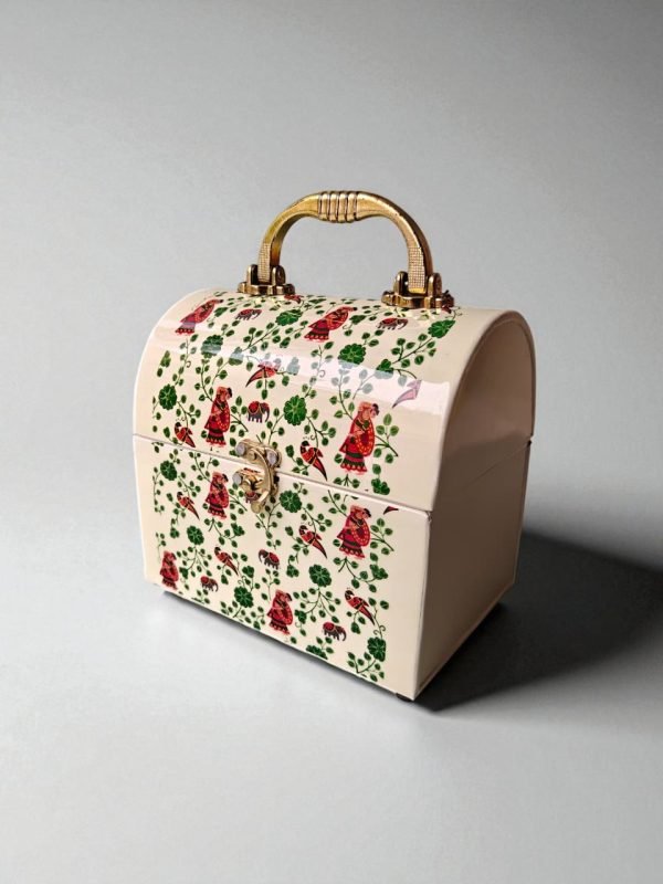 - Each box is adorned with elaborate Kamakkari motifs, hand-painted and embellished to perfection, offering a visual treat of textures and colors.