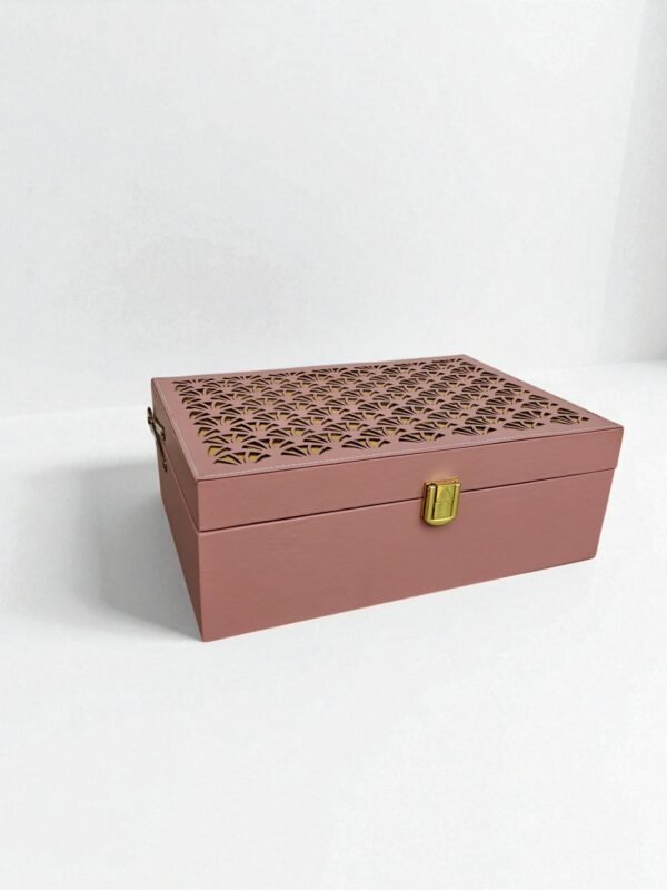 Handmade Wooden  Gift Box is a premium, handcrafted box designed with a lockable briefcase-style handle. Elegant, durable, and versatile, it is perfect for corporate gifting, festive return gifts, weddings, and family celebrations. Ideal for presenting chocolates, dry fruits, jewelry, or personalized keepsakes, this box offers a luxurious and reusable gifting solution.